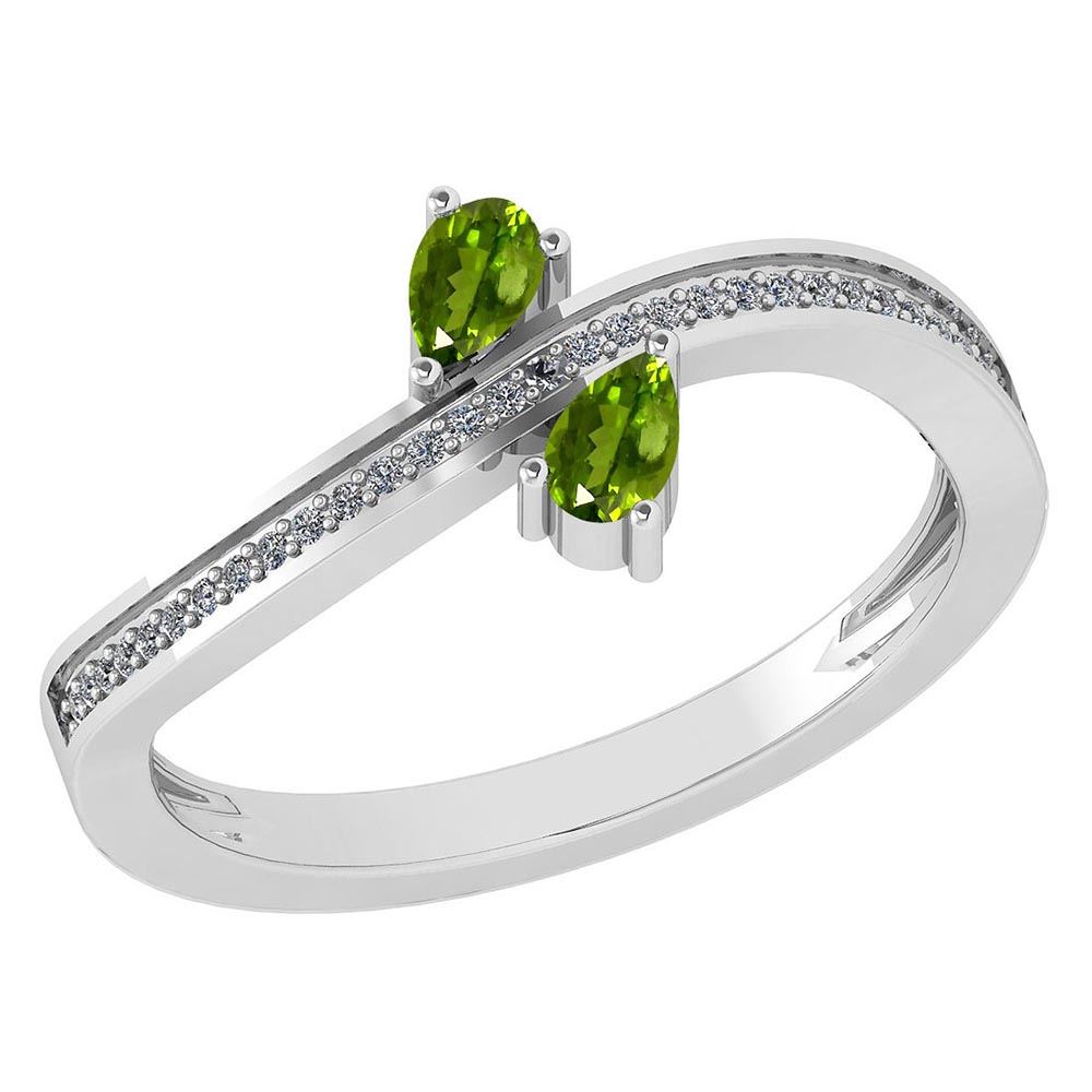 Certified 0.50 Ctw Peridot And Diamond 18K White Gold R **|**|** Center Stone Weight ; 0.36 Ctw (2 Pcs Pear) Center Stone: Peridot Center Stone Setting ; Prong Side Stone (08.mm 15 Pcs Round Cut Diamond)0.14 ctw Side Stone Color : White G-H Diamond Side Stone Setting: Prong Side Stone Clarity : VS/SI1 Metal Color White Gold Metal Weight : Approx 2.70 Gram 18K White Gold Ring