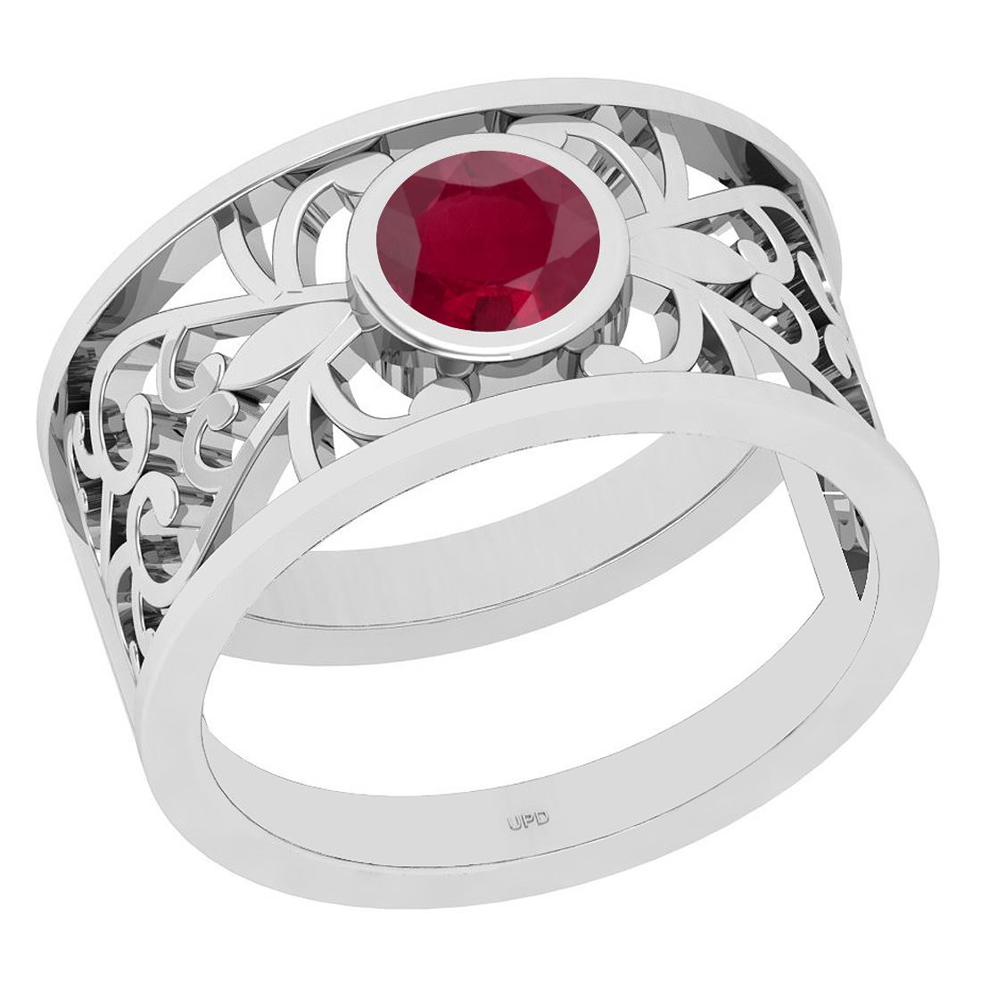 Certified 0.50 Ctw Ruby Style Bezel Set 14K White Gold **|**|** Center Stone Approx Weight: 0.50 Ctw (Round Cut) Center Stone Color: Ruby Center Stone Setting: Bezel Metal Approx Weight: 4.30 Gram 14K White Gold Eternity Men's Band Ring Size: 9 (Free Sizing Avail)