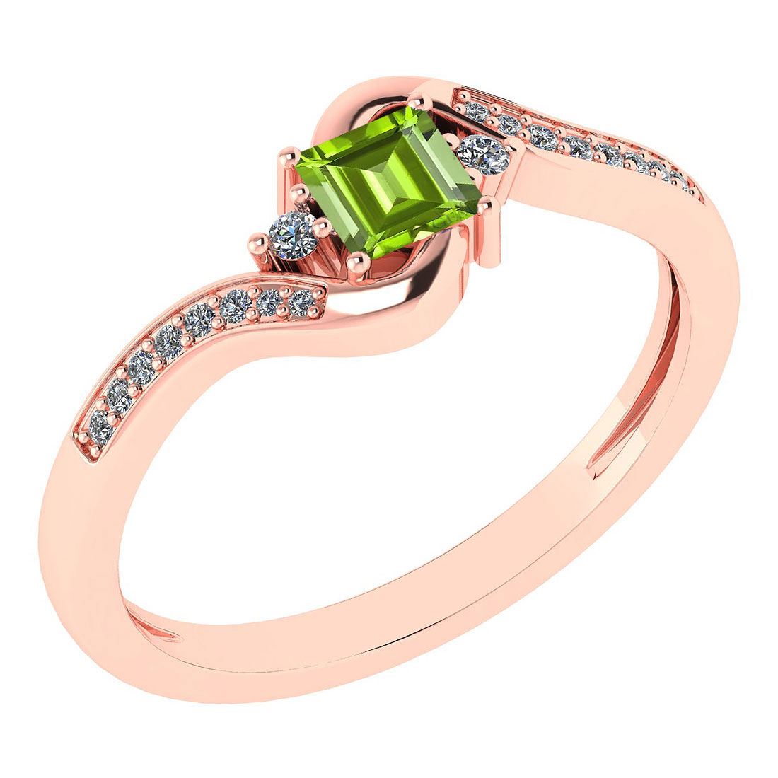 Certified 0.51 Ctw Peridot And Diamond 14k Rose Gold Ha **|**|** Center Stone Weight ; .39Ctw (1 Pcs Princess) Center Stone Color: Peridot Center Stone Setting ; Prong Side Stone (.80mm 4Pcs 1.mm 12 Pcs And 1.50 2 Pcs Round Cut Diamond) 0.12 ctw Side Stone Color: White G-H Diamond Side Stone Setting: Prong Side Stone Clarity: VS/SI1 Metal Color Rose Gold Metal Approx Weight: 2.80 Gram 14K Rose Gold Halo Promise Ring Made In USA