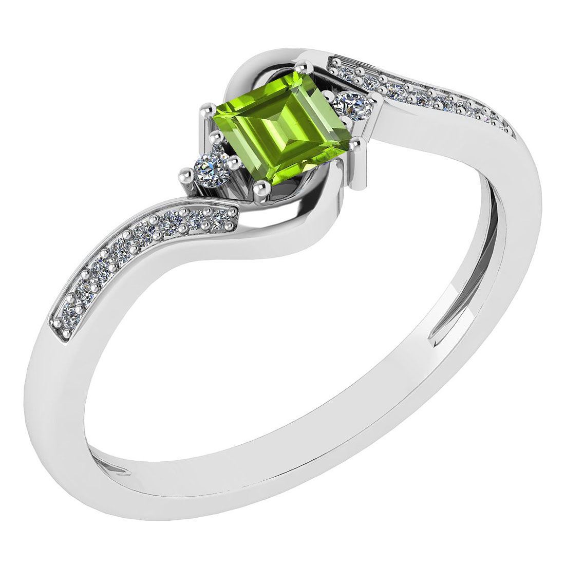 Certified 0.51 Ctw Peridot And Diamond 14k White Gold H **|**|** Center Stone Weight ; .39Ctw (1 Pcs Princess) Center Stone Color: Peridot Center Stone Setting ; Prong Side Stone (.80mm 4Pcs 1.mm 12 Pcs And 1.50 2 Pcs Round Cut Diamond) 0.12 ctw Side Stone Color: White G-H Diamond Side Stone Setting: Prong Side Stone Clarity: VS/SI1 Metal Color White Gold Metal Approx Weight: 2.80 Gram 14K White Gold Halo Promise Ring Made In USA