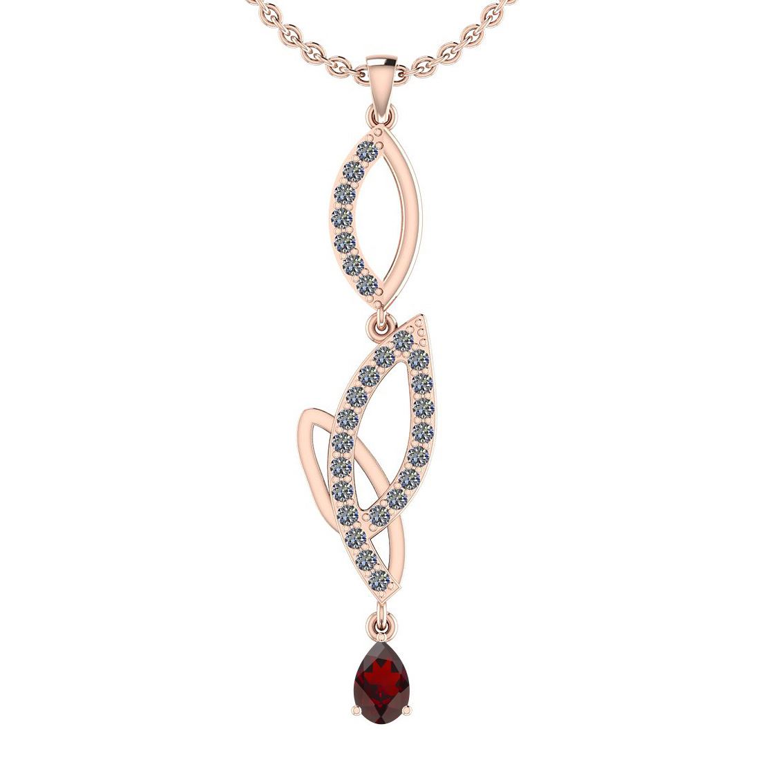 Certified 0.53 Ctw I2/I3 Garnet And Diamond 10K Rose Go **|**|** Center Stone Approx Weight: 0.25 Ctw (Pear Cut) Center Stone Color: Garnet Center Stone Setting: Prong Side Stone 0.28 Ctw Side Stone Color: J-K Stone Clarity: I2/I3 Stone Setting: Prong Metal Approx Weight: 2.60 Gram 10K Rose Gold Pendant