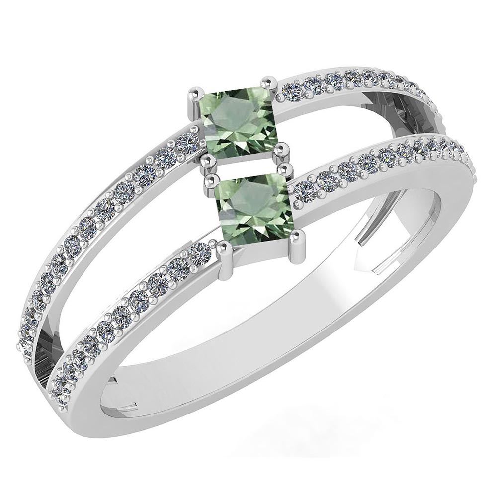 Certified 0.60 Ctw Green Amethyst And Diamond 18k White **|**|** Center Stone Weight ; 0.36 Ctw (2 Pcs Princess) Center Stone: Green Amethyst Center Stone Setting ; Prong Side Stone (1.mm 48 Pcs Round Cut Diamond)0.24 ctw Side Stone Color : White G-H Diamond Side Stone Setting: Prong Side Stone Clarity : VS/SI1 Metal Color White Gold Metal Weight : Approx 3.60Gram 18k White Gold Ring