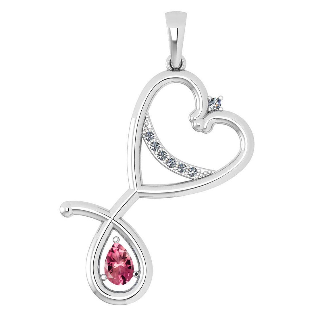 Certified 0.60 Ctw Pink Tourmaline And Diamond Pendant **|**|** Center Stone Weight ; 0.50 Ctw (1 Pcs Pear)Center Stone Color: Pink Tourmaline Center Stone Setting : Prong Side Stone (7 Pcs Round Cut Diamond) Stone Weight Of Ctw 0.10 Ctw Side Stone Color: White G-H Diamond Stone Clarity: VS/SI1 Center Stone Setting ; Prong Metal Weight: Approx 4.90 Gram 14K White Gold Pendant