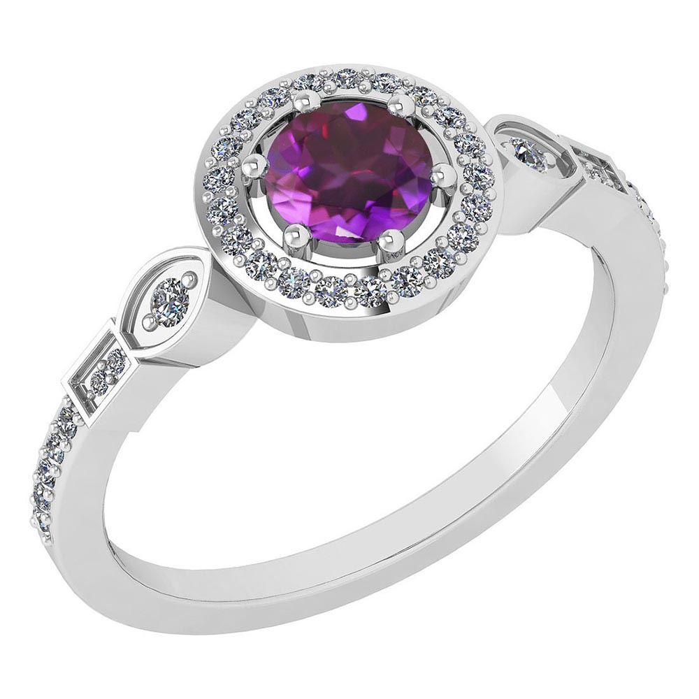 Certified 0.65 Ctw Amethyst And Diamond Platinum Gold H **|**|** Center Stone Weight ; 0.45 Ctw(1Pcs Round) Center Stone Color :Amethyst Center Stone Setting ; Prong Side Stone (08.mm 4Pcs 1.mm 31 Pcs 1.5mm 2Pcs Round Cut Diamond) 0.20 ctw Side Stone Color : White G-H Diamond Side Stone Setting: Prong Side Stone Clarity : VS/SI1 Metal Color White Gold Metal Weight : Approx 4.44 Gram Platinum Halo Ring