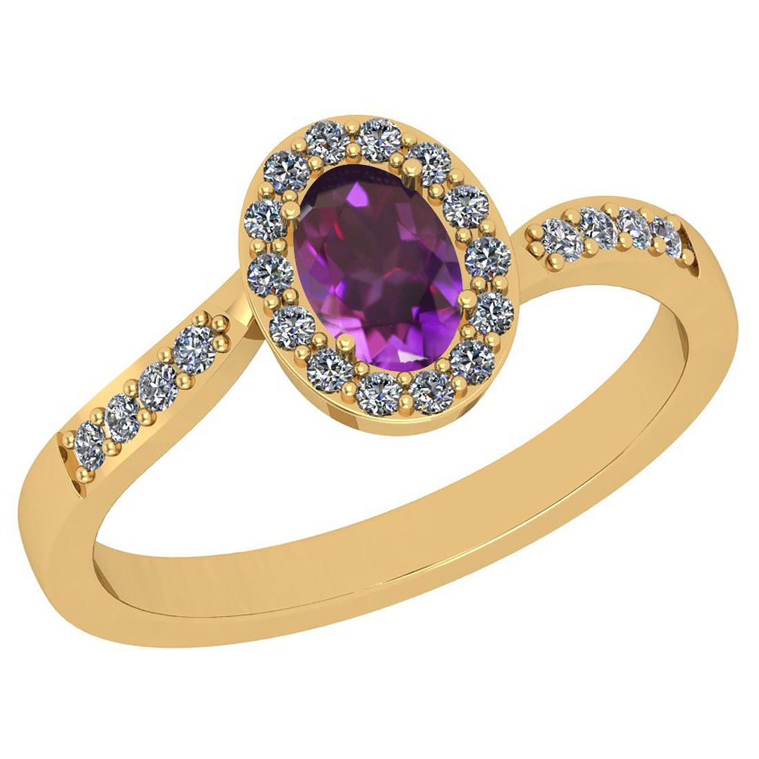 Certified 0.67 Ctw I2/I3 Amethyst And Diamond 10K Yello **|**|** Center Stone Approx Weight: 0.50 Ctw (Oval Cut) Center Stone Color: Amethyst Center Stone Setting: Prong Side Stone 0.17 Ctw Side Stone Color: J-K Stone Clarity: I2/I3 Stone Setting: Prong Metal Approx Weight: 2.50 Gram 10K Yellow Gold Baypass Halo Ring Size: 6 (Free Sizing Available)