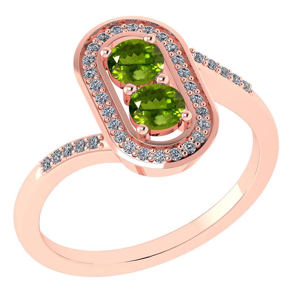 Certified 0.68 Ctw Peridot And Diamond 14k Rose Gold Ha **|**|** Center Stone Weight ; 0.50 Ctw (2Pcs Round) Center Stone Color: Peridot Center Stone Setting ; Prong Side Stone (1.mm 36Pcs Round Cut Diamond) 0.18 ctw Side Stone Color: White G-H Diamond Side Stone Setting: Prong Side Stone Clarity : VS/SI1 Metal Color Rose Gold Metal Weight : Approx 3.11 Gram 14K Rose Gold Halo Ring G-H VS/SI1