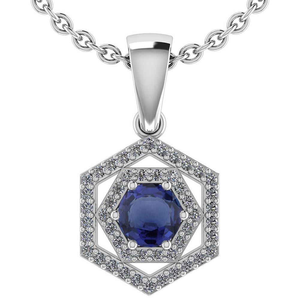 Certified 0.69 Ctw Blue Sapphire And Diamond Platinum H **|**|** Center Stone Weight ; 0.45 Ctw (1 Pcs Round) Center Stone: Blue Sapphire Center Stone Setting ; Prong Side Stone (1.mm 48 Pcs Round Cut Diamond) 0.24 ctw Side Stone Color : White G-H Diamond Side Stone Setting: Prong Side Stone Clarity: VS/SI1 Metal Weight : Approx 4.40 Gram Included Chain 1gram Platinum Halo Pendant