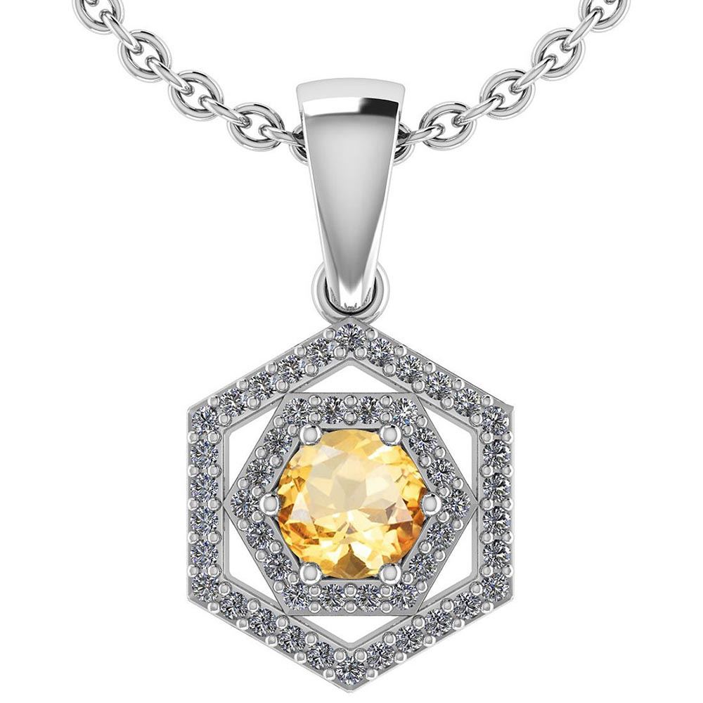 Certified 0.69 Ctw Citrine And Diamond 18K White Gold H **|**|** Center Stone Weight ; 0.45 Ctw (1 Pcs Round) Center Stone Color: Citrine Center Stone Setting ; Prong Side Stone (1.mm 48 Pcs Round Cut Diamond) 0.24 ctw Side Stone Color: White G-H Diamond Side Stone Setting: Prong Side Stone Clarity : VS/SI1 Metal Color White Gold Metal Weight : Approx 4.17 Gram Included Chain 1gram 18K White Gold Halo Pendant G-H VS/SI1