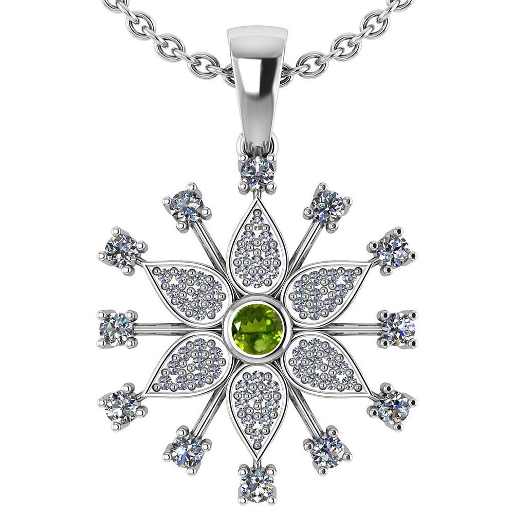 Certified 0.71 Ctw Peridot And Diamond Platinum Gold Ha **|**|** Center Stone Weight ; 0.10 Ctw(1 Pcs Round) Center Stone Color : Peridot Center Stone Setting ; Prong Side Stone (.09mm 54 Pcs And 2.mm 12 Pcs Round Cut Diamond) 0.61 ctw Side Stone Color : White G-H Diamond Side Stone Setting: Prong Side Stone Clarity : VS/SI1 Metal Color White Gold Metal Weight : Approx 5.80 Gram Platinum Halo Pendant Included Chain