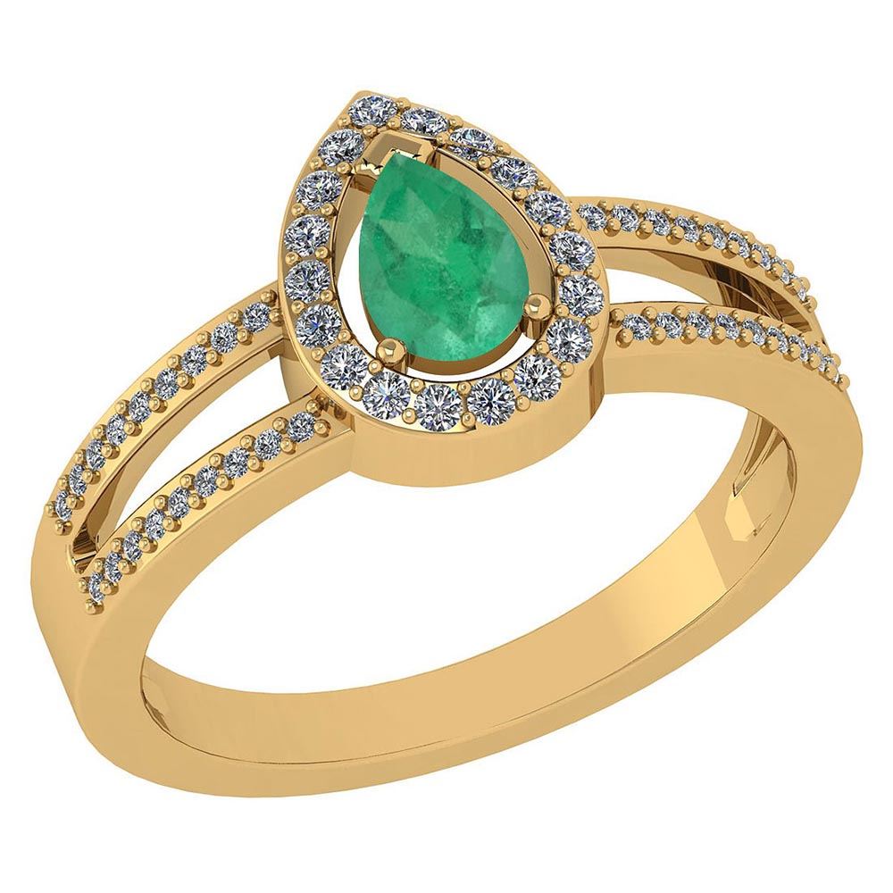 Certified 0.74 CTW Emerald And Diamond 14k Yellow Gold **|**|** Center Stone Weight ; 0.50 CTW (1 Pcs Pear) Center Stone Color :Emerald Center Stone Setting ; Prong (1.2mm 18 Pcs And 08.mm 36Pcs Round Cut Diamond) 0.24 CTW Side Stone Color : White G-H Diamond Side Stone Setting: Prong Side Stone Clarity : VS/SI1 Metal Color Yellow Gold Metal Weight : Approx 4.5Gram 14K Yellow Gold Halo Ring