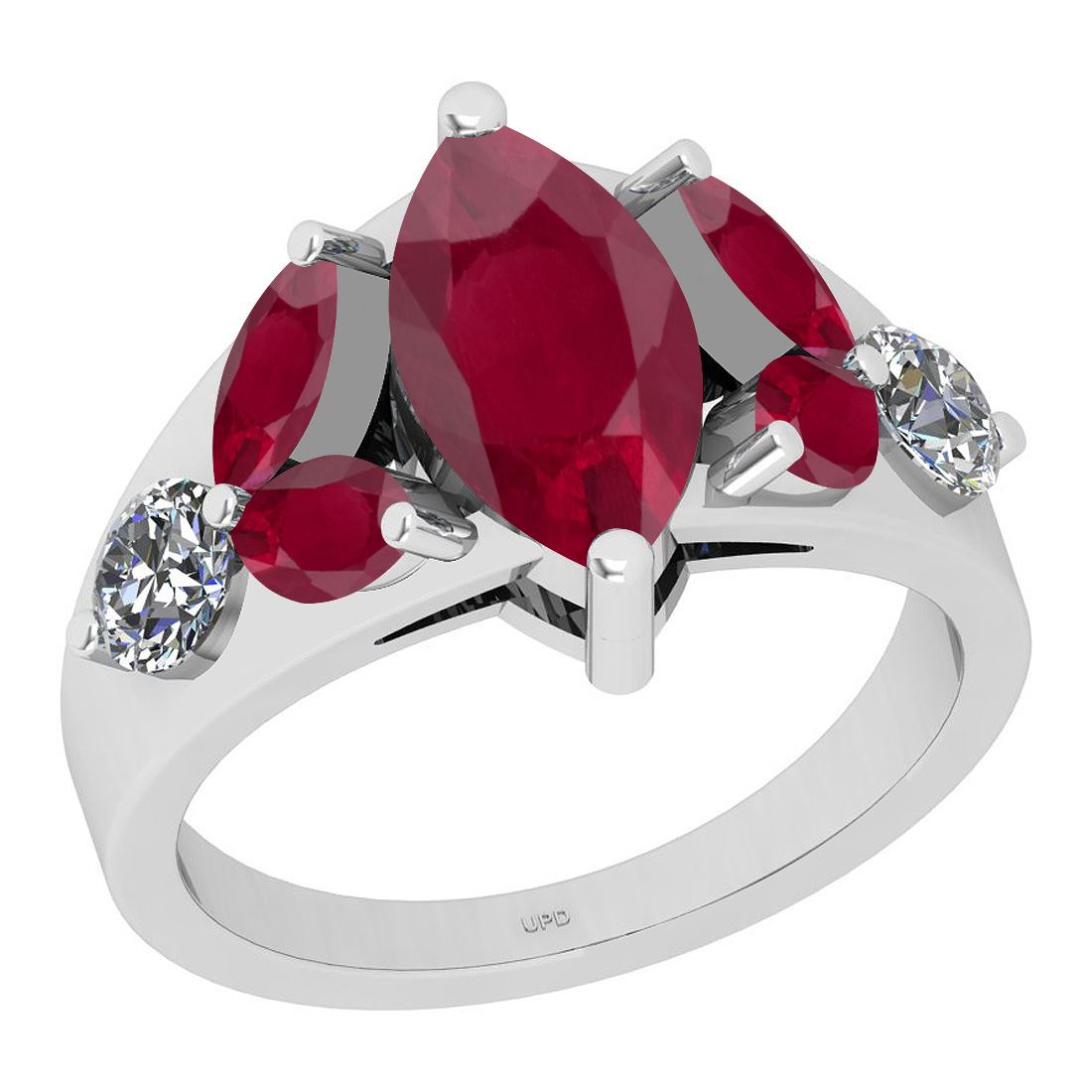Certified 0.76 Ctw I2/I3 Ruby And Diamond 14K White Gol **|**|** Center Stone Approx Weight: 0.54 Ctw (Marquise Cut) Center Stone Color: Ruby Center Stone Setting: Prong Side Stone 0.22 Ctw Side Stone Color: J-K Stone Clarity : I2/I3 Stone Setting: Prong Metal Approx Weight: 3.20 Gram 14K White Gold Anniversary Ring Size: 6 (Free Sizing Avail)