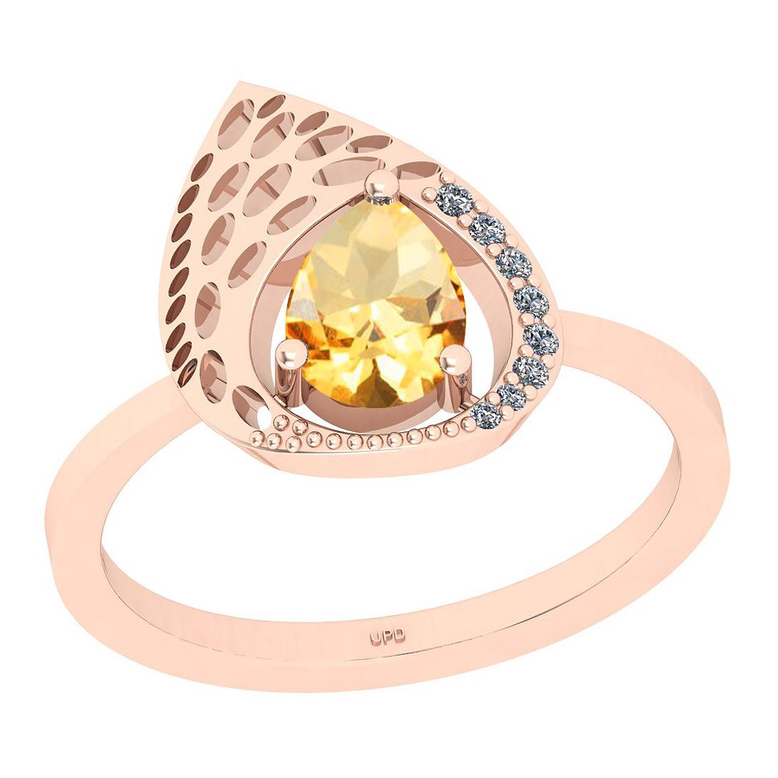 Certified 0.79 Ctw I2/I3 Citrine And Diamond 10K Rose G **|**|** Center Stone Approx Weight: 0.75 Ctw (Pear Cut) Center Stone Color: Citrine Center Stone Setting: Prong Side Stone 0.04 Ctw Side Stone Color: J-K Stone Clarity: I2/I3 Stone Setting: Prong Metal Approx Weight: 2.80 Gram 10K Rose Gold Vintage Style Ring Size: 6 (Free Sizing Avail)
