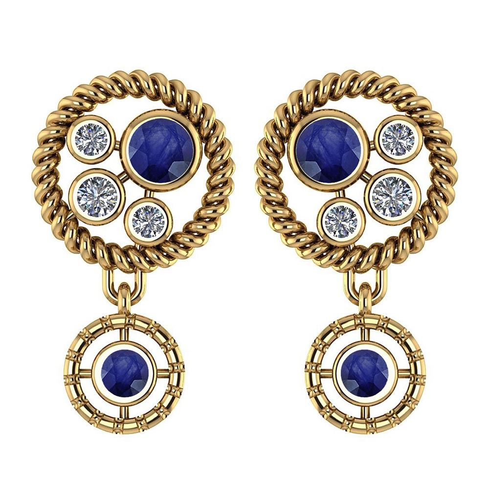 Certified 0.84 Ctw Blue Sapphire And Diamond Wedding/En **|**|** Color Stone Weight ; 0.67 Ctw (4 Pcs Round) Stone Color: Blue Sapphire Center Stone Setting ; Bezel Side Stone: (6 Pcs Round Cut Diamond) 0.17 ctw Side Stone Color: White G-H Diamond Side Stone Setting: Bezel Side Stone Clarity: VS/SI1 Metal Color: Yellow Gold Metal Weight: Approx 4.10 Gram 14K Yellow Gold Stud Earrings