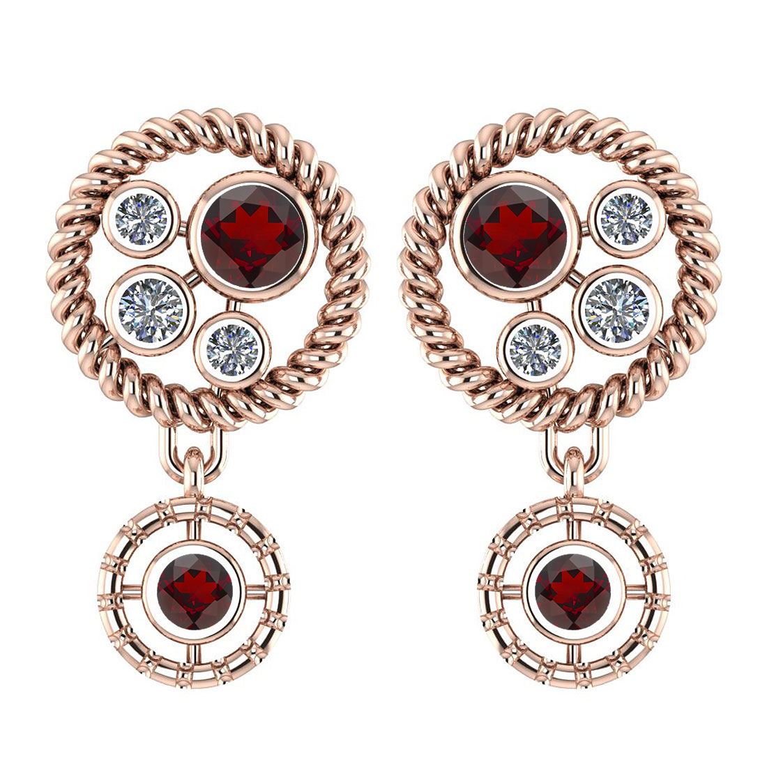 Certified 0.84 Ctw Garnet And Diamond Wedding/Engagemen **|**|** Color Stone Weight ; 0.67 Ctw (4 Pcs Round) Stone Color: Garnet Center Stone Setting ; Bezel Side Stone: (6 Pcs Round Cut Diamond) 0.17 ctw Side Stone Color: White G-H Diamond Side Stone Setting: Bezel Side Stone Clarity: VS/SI1 Metal Color: Rose Gold Metal Weight: Approx 4.10 Gram 14K Rose Gold Stud Earrings