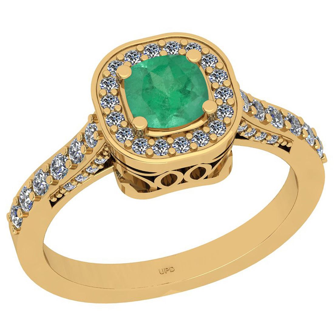 Certified 1.01 Ctw I2/I3 Emerald And Diamond 14K Yellow **|**|** Center Stone Approx Weight: 0.50 Ctw (Cushion Cut) Center Stone Color: Emerald Center Stone Setting: Prong Side Stone 0.51 Ctw Side Stone Color: J-K Stone Clarity: I2/I3 Stone Setting: Prong Metal Approx Weight: 3.30 Gram 14K Yellow Gold Engagement Halo Ring Size: 6 (Free Sizing Avail)