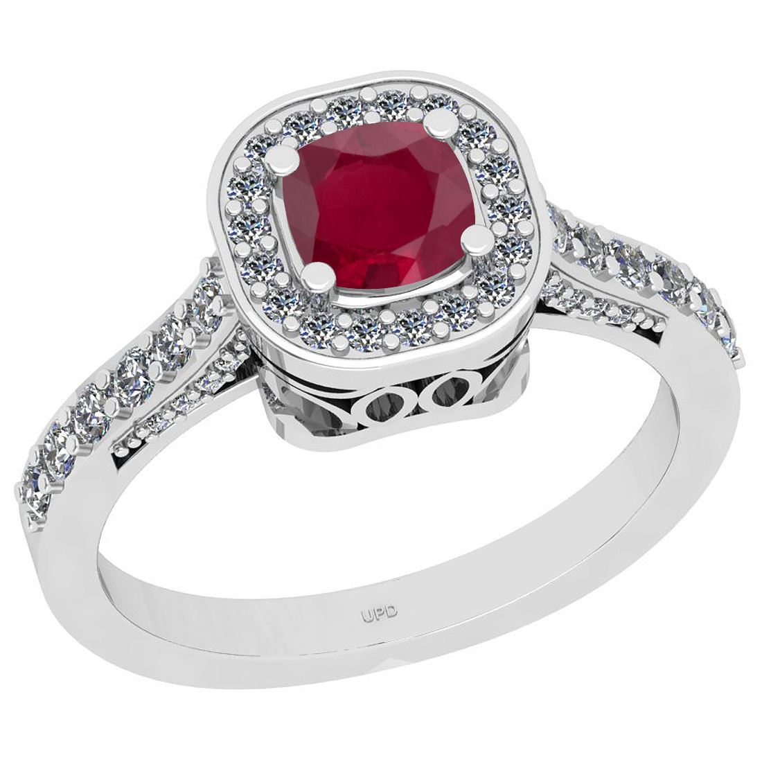 Certified 1.01 Ctw I2/I3 Ruby And Diamond 14K White Gol **|**|** Center Stone Approx Weight: 0.50 Ctw (Cushion Cut) Center Stone Color: Ruby Center Stone Setting: Prong Side Stone 0.51 Ctw Side Stone Color: J-K Stone Clarity: I2/I3 Stone Setting: Prong Metal Approx Weight: 3.30 Gram 14K White Gold Engagement Halo Ring Size: 6 (Free Sizing Avail)