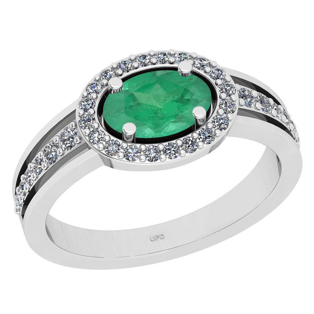 Certified 1.05 Ctw I2/I3 Emerald And Diamond 14K White **|**|** Center Stone Approx Weight: 0.75 Ctw (Oval Cut) Center Stone Color: Emerald Center Stone Setting: Prong Side Stone 0.30 Ctw Side Stone Color: J-K Stone Clarity: I2/I3 Stone Setting: Prong Metal Approx Weight: 2.90 Gram 14K White Gold Engagement Halo Ring Size: 6 (Free Sizing Avail)