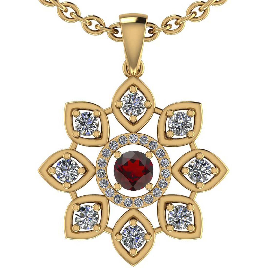 Certified 1.10 Ctw Garnet And Diamond I1/I2 10K Yellow **|**|** Color Stone Approx Weight: 0.50 Ctw (1 pcs Round) Center Stone Color: Garnet Center Stone Setting: Prong Side Stone Approx Weight: 0.60 Ctw Side Stone Color: J-K Stone Clarity: I1/I2 Stone Setting: Prong Metal Approx Weight: 2.40 Gram 10K Yellow Gold Pendant
