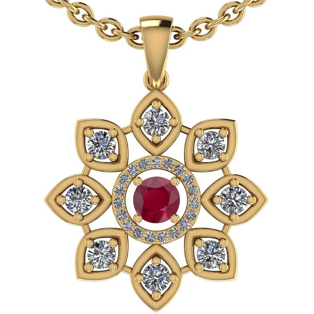 Certified 1.10 Ctw Ruby And Diamond VS/SI1 18K Yellow G **|**|** Color Stone Approx Weight: 0.50 Ctw (1 pcs Round) Center Stone Color: Ruby Center Stone Setting: Prong Side Stone Approx Weight: 0.60 Ctw Side Stone Color: J-K Stone Clarity: VS/SI1 Stone Setting: Prong Metal Approx Weight: 3.20 Gram 18K Yellow Gold Pendant