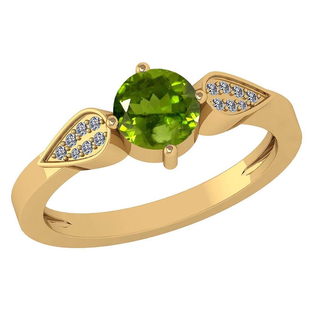 Certified 1.12 Ctw Peridot And Diamond 14k Yellow Gold **|**|** Center Stone Weight ; 1.00 Ctw (1 Pcs Round) Center Stone: Peridot Center Stone Setting ; Prong (1.mm 12Pcs And 80.mm 2pcs Round Cut Diamond) 0.12 ctw Side Stone Color : White G-H Diamond Side Stone Setting: Prong Side Stone Clarity : VS/SI1 Metal Color Yellow Gold Metal Weight : Approx 2.80Gram 14K Yellow Gold Halo Ring VS/SI1