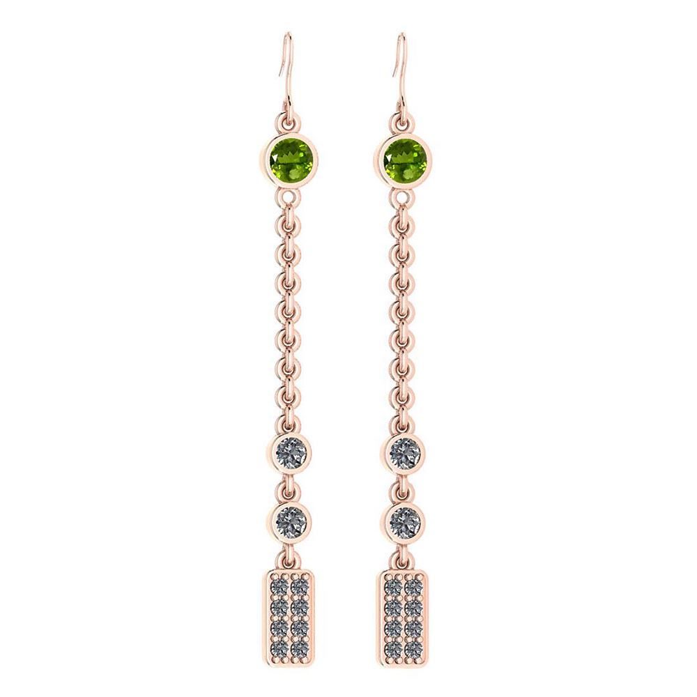 Certified 1.13 Ctw Peridot And Diamond VS/SI1 Earrings **|**|** Center Stone Approx Weight ; 0.60 Ctw (2 Pcs Round) Center Stone Color: Peridot Center Stone Setting ; Bezel Side Stone (20 Pcs Round Diamond) 0.73 ctw Side Stone Color: White G-H Diamond Side Stone Setting: Bezel Stone Clarity: VS/SI1 Metal Approx Weight: 3.90 Gram 14K Rose Gold Drop Earrings Made In USA