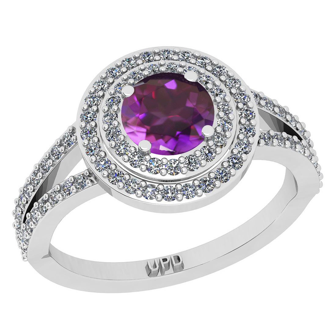 Certified 1.14 Ctw I2/I3 Amethyst And Diamond 10K White **|**|** Center Stone Approx Weight: 0.50 Ctw (Round Cut) Center Stone Color: Amethyst Center Stone Setting: Prong Side Stone 0.64 Ctw Side Stone Color: J-K Stone Clarity: I2/I3 Stone Setting: Prong Metal Approx Weight: 3.90 10K White Gold Engagement Halo Ring Size: 6 (Free Sizing Avail)