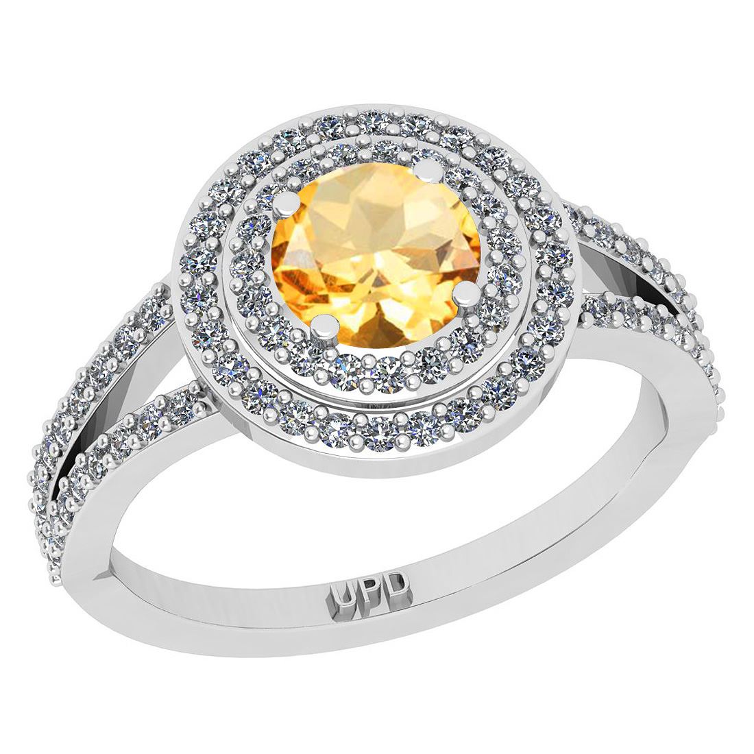 Certified 1.14 Ctw I2/I3 Citrine And Diamond 10K White **|**|** Center Stone Approx Weight: 0.50 Ctw (Round Cut) Center Stone Color: Citrine Center Stone Setting: Prong Side Stone 0.64 Ctw Side Stone Color: J-K Stone Clarity: I2/I3 Stone Setting: Prong Metal Approx Weight: 3.90 10K White Gold Engagement Halo Ring Size: 6 (Free Sizing Avail)