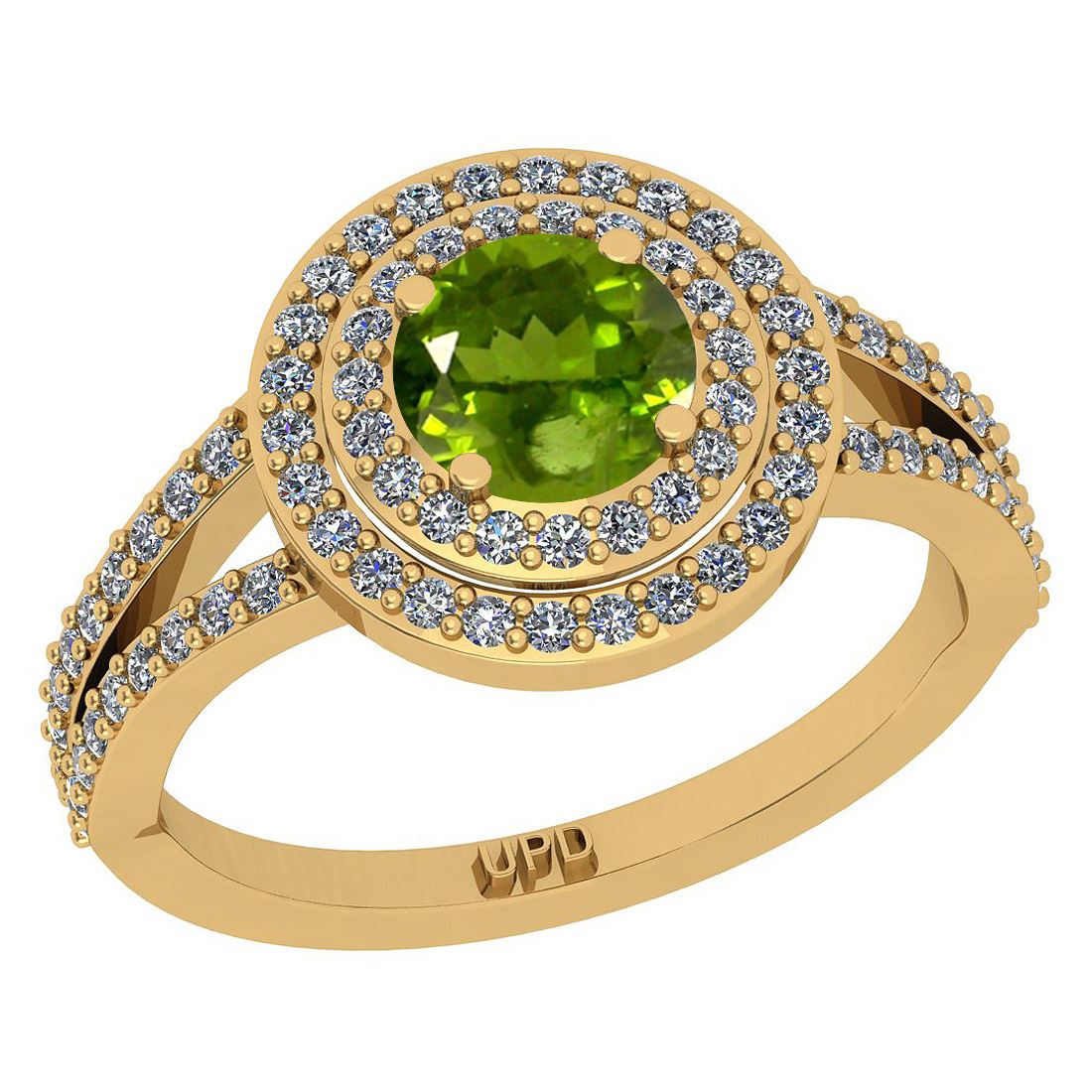 Certified 1.14 Ctw I2/I3 Peridot And Diamond 10K Yellow **|**|** Center Stone Approx Weight: 0.50 Ctw (Round Cut) Center Stone Color: Peridot Center Stone Setting: Prong Side Stone 0.64 Ctw Side Stone Color: J-K Stone Clarity: I2/I3 Stone Setting: Prong Metal Approx Weight: 3.90 10K Yellow Gold Engagement Halo Ring Size: 6 (Free Sizing Avail)