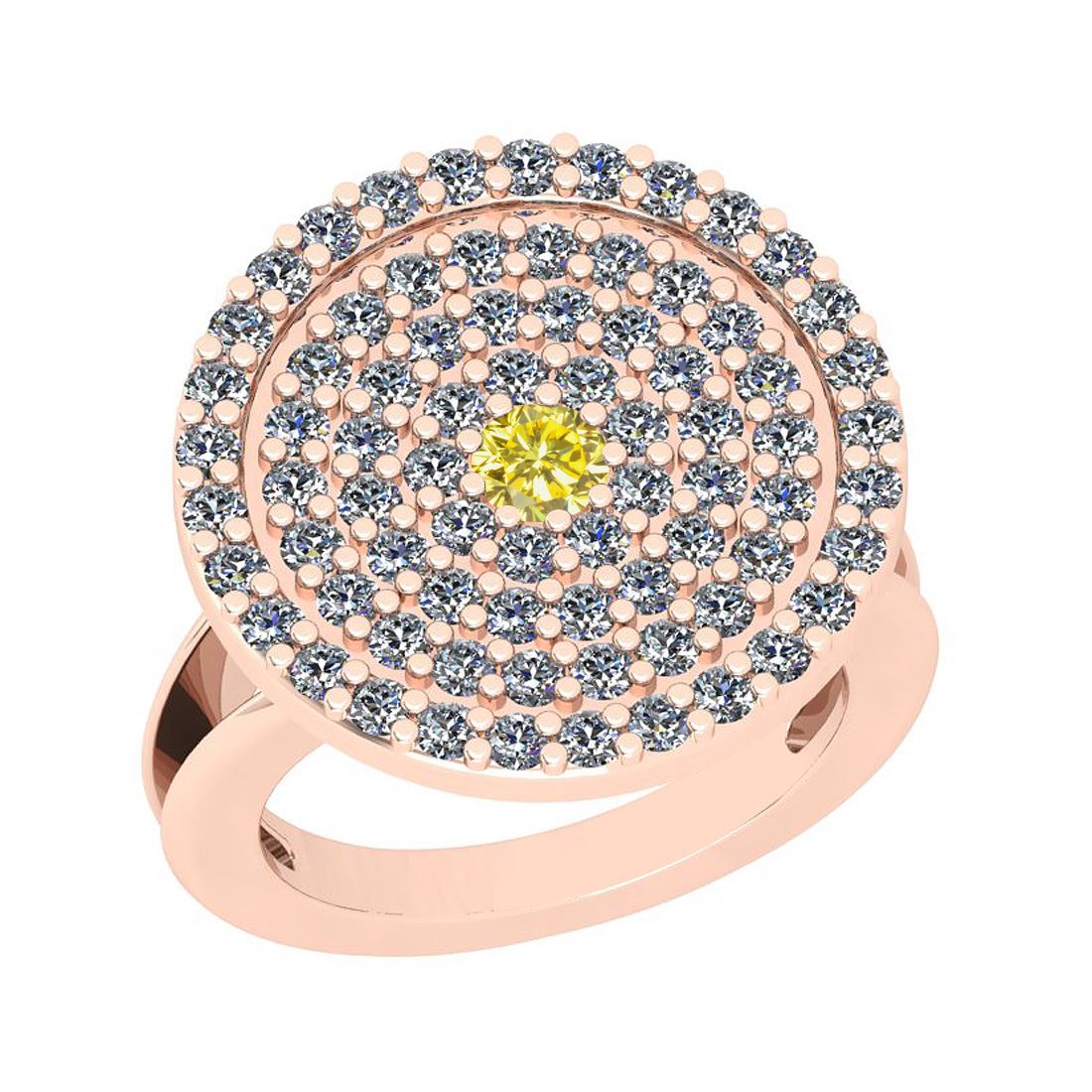 Certified 1.15 Ctw I2/I3 Treated Fancy Yellow And White **|**|** Center Diamond Approx Weight: 0.25 Ctw (Round Cut) Center Color: Treated Fancy Yellow Diamond Stone Clarity: I2/I3 Center Stone Setting: Prong Side Stone 0.80 Ctw Side Stone Color: J-K Stone Clarity: I2/I3 Stone Setting: Prong Metal Approx Weight: 5.50 Gram 14K Rose Gold Ring Size: 6 (Free Sizing Available)