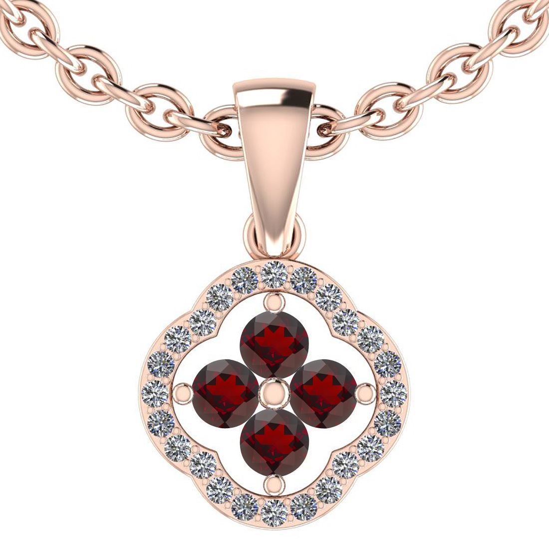 Certified 1.20 Ctw Garnet And Diamond I1/I2 10K Rose Go **|**|** Color Stone Approx Weight: 1.00 Ctw (4 pcs Round) Center Stone Color: Garnet Center Stone Setting: Prong Side Stone Approx Weight: 0.20 Ctw Side Stone Color: J-K Stone Clarity: I1/I2 Stone Setting: Prong Metal Approx Weight: 2.20 Gram 10K Rose Gold Pendant