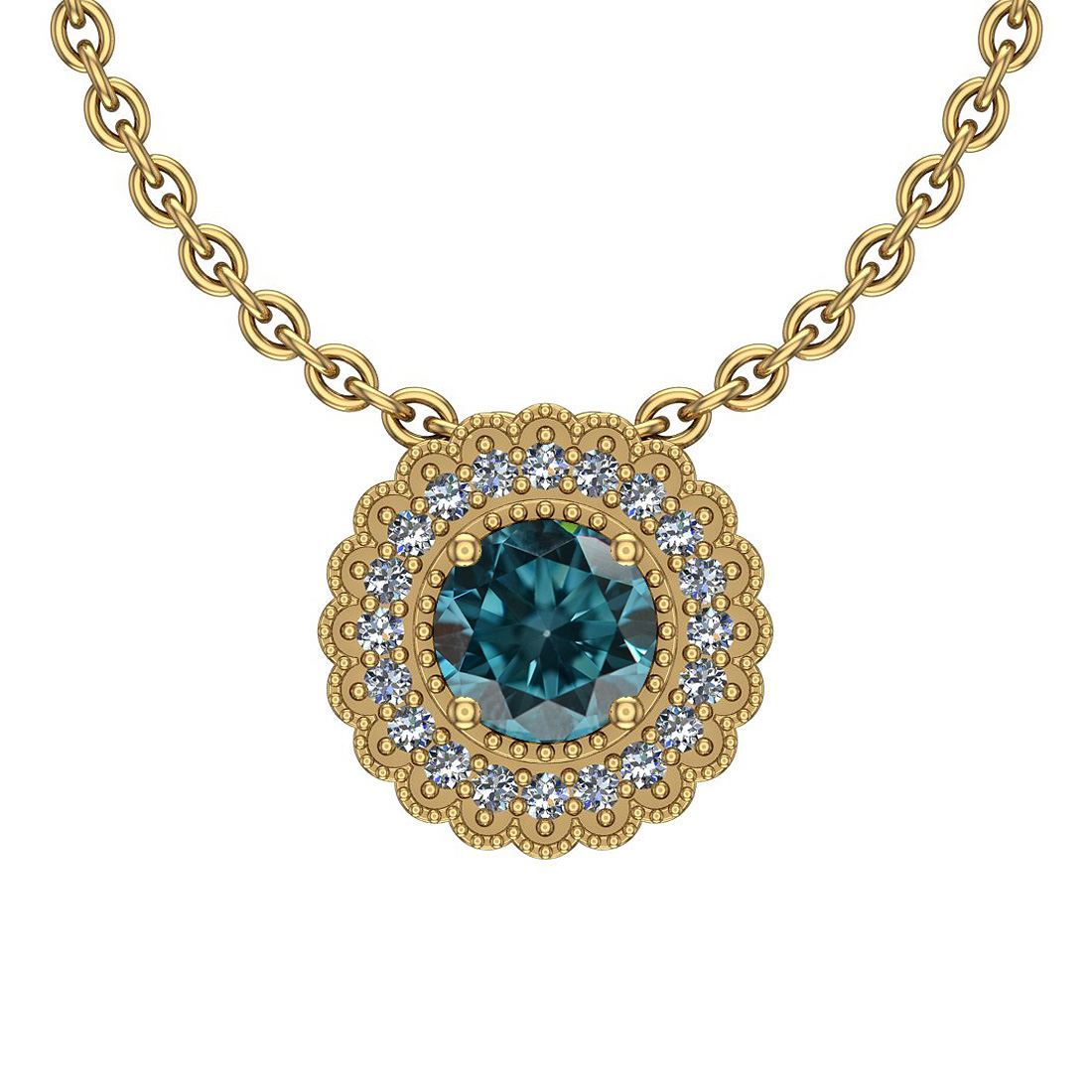 Certified 1.20 Ctw I2/I3 Treated Fancy Blue and White D **|**|** Center Approx Weight: 1.00 Ctw (Round Cut) Center Color: Treated Fancy Blue Diamond Center Clarity: I2/I3 Center Setting: Prong Side Stone 0.20 Ctw Side Stone Color: G-H Stone Clarity: I2/I3 Stone Setting: Prong Metal Approx Weight: 2.50 Gram 18K Yellow Gold Pendant