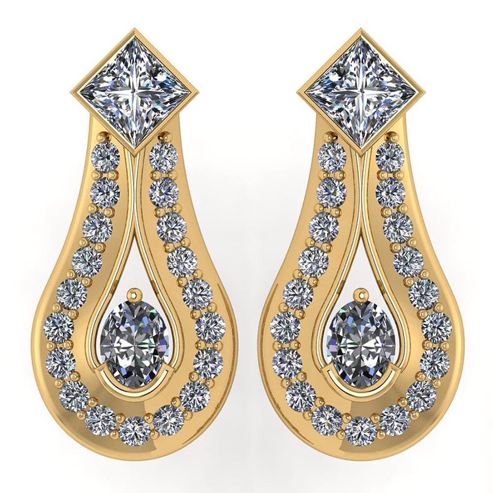 Certified 1.23 Ctw Diamond Wedding/Engagement 14K Yello **|**|** Center Stone Approx Weight ; 0.42Ctw ( 2 Pcs Oval) Center Stone Color: White G-H Diamond Center Stone Setting ; Prong Side Stone ( 2Pcs Princess Cut Diamond & 38 Pcs Round Diamond)Weight of Ctw ; 0.81 ctw Side Stone Color: White G-H Diamond Side Stone Setting: Prong Stone Clarity: SI2/I1 Metal Color: Yellow Gold Metal Weight: Approx 2.90 Gram 14K Yellow Gold Stud Earrings