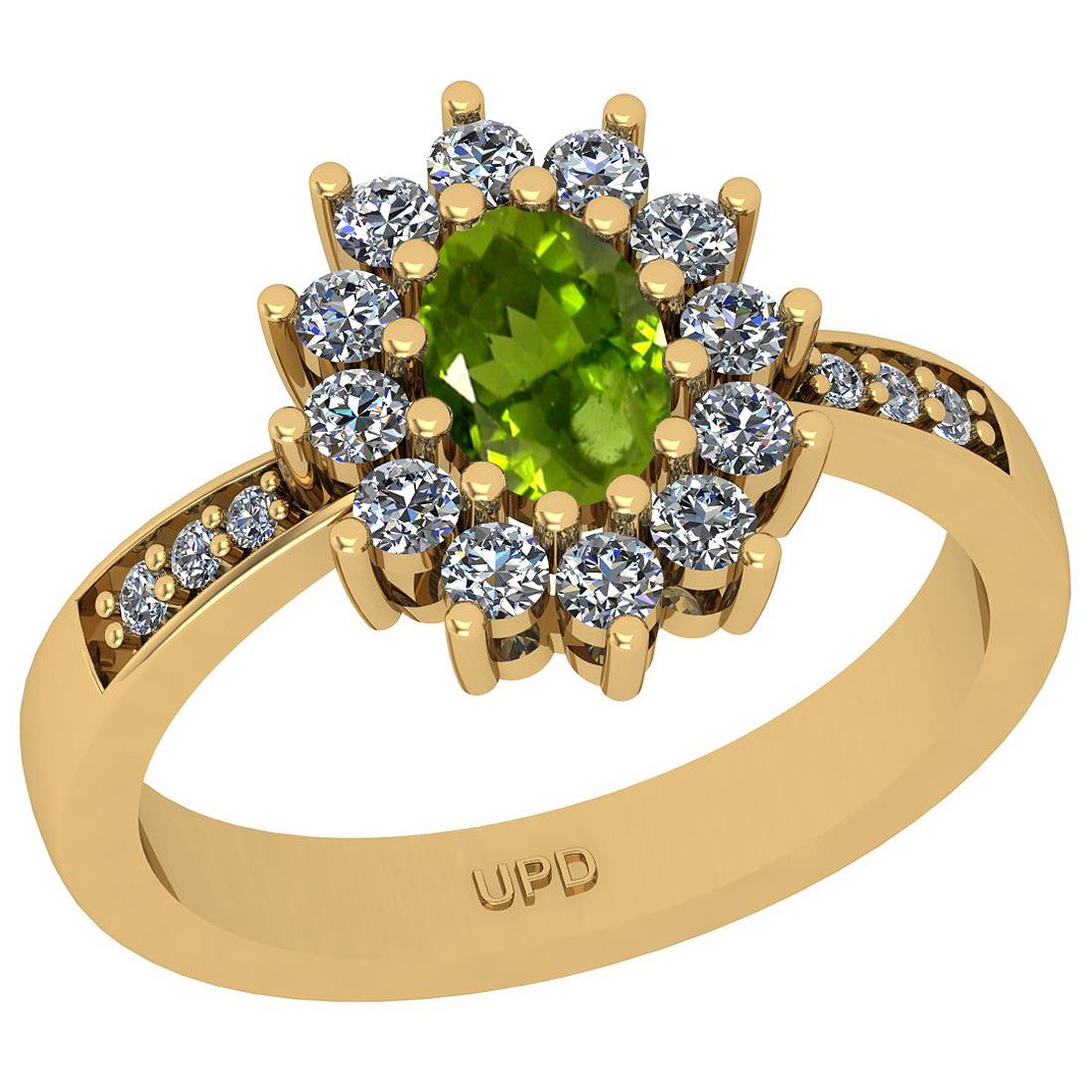 Certified 1.23 Ctw I2/I3 Peridot And Diamond 10K Yellow **|**|** Center Stone Approx Weight: 0.75 Ctw (Oval Cut) Center Stone Color: Peridot Center Stone Setting: Prong Side Stone 0.48 Ctw Side Stone Color: J-K Stone Clarity: I2/I3 Stone Setting: Prong Metal Approx Weight: 3.30 10K Yellow Gold Ring Size: 6 (Free Sizing Avail)