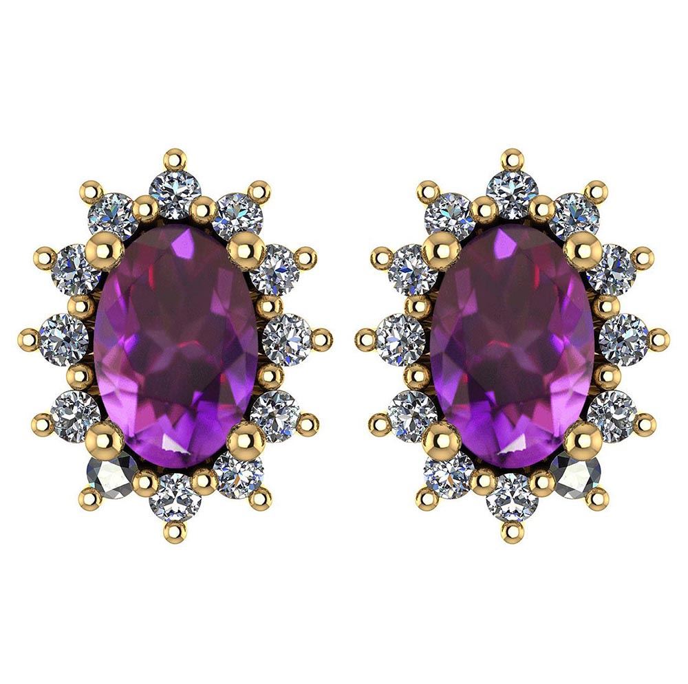 Certified 1.24 Ctw Amethyst And Diamond 14k Yellow Gold **|**|** Center Stone Weight ; 1.00Ctw (2 Pcs Oval) Center Stone: Amethyst Center Stone Setting ; Prong Side Stone (1.3mm 24Pcs Round Cut Diamond) 0.24 ctw Side Stone Color : White G-H Diamond Side Stone Setting: Prong Side Stone Clarity : VS/SI1 Metal Color Yellow Gold Metal Weight : Approx 1.64Gram 14K Yellow Gold Halo Stud Earring