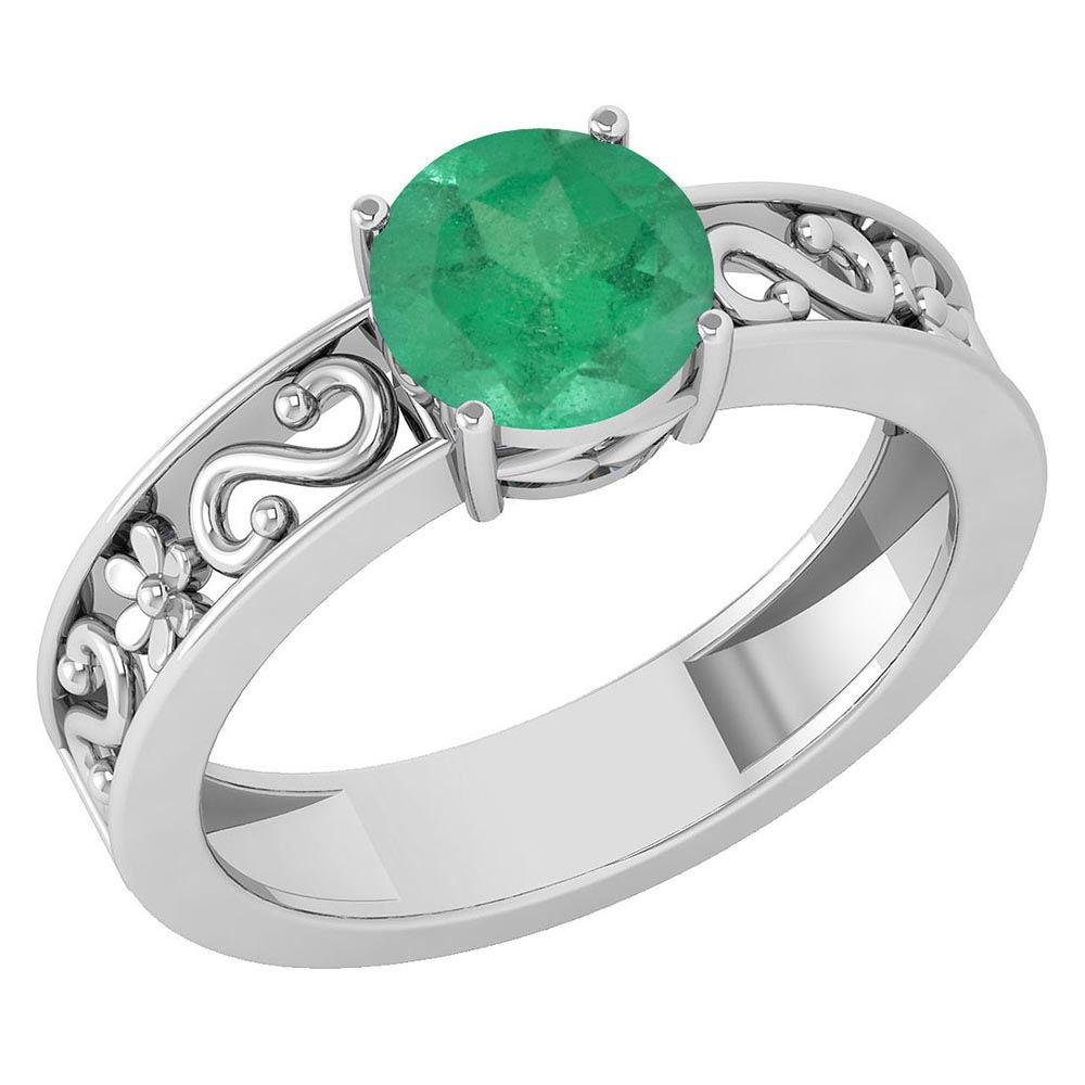 Certified 1.25 Ctw Emerald Solitaire Ring with Filigree **|**|** Center Stone Approx Weight ; 1.25 Ctw (1 Pcs Round) Center Stone Color: Emerald Center Stone Setting ; Prong Metal Approx Weight: 2.80 Gram 14K White Gold Solitaire Ring with Filigree Made In USA