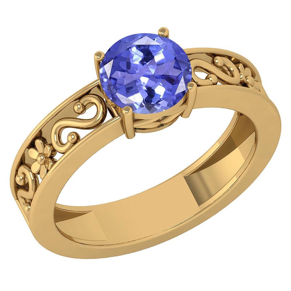 Certified 1.25 Ctw Tanzanite Solitaire Ring with Filigr **|**|** Center Stone Approx Weight ; 1.25 Ctw (1 Pcs Round) Center Stone Color: Tanzanite Center Stone Setting ; Prong Metal Approx Weight: 2.80 Gram 14K Yellow Gold Solitaire Ring with Filigree Made In USA