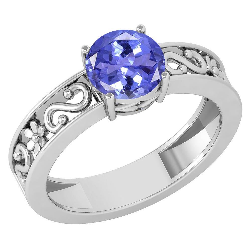 Certified 1.25 Ctw Tanzanite Solitaire Ring with Filigr **|**|** Center Stone Approx Weight ; 1.25 Ctw (1 Pcs Round) Center Stone Color: Tanzanite Center Stone Setting ; Prong Metal Approx Weight: 2.80 Gram 14K White Gold Solitaire Ring with Filigree Made In USA