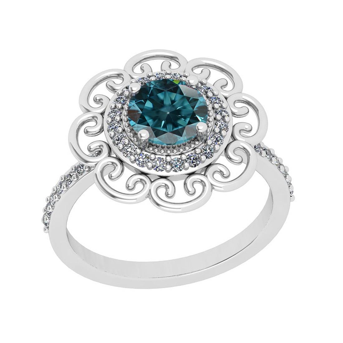 Certified 1.27 Ctw I2/I3 Treated Fancy Blue and White D **|**|** Center Approx Weight: 1.00 Ctw (Round Cut) Center Color: Treated Fancy Blue Diamond Center Clarity: I2/I3 Center Setting: Prong Side Stone 0.27 Ctw Side Stone Color: G-H Stone Clarity: I2/I3 Stone Setting: Prong Metal Approx Weight: 4.00 Gram 18K White Gold Engagement Halo Ring Size: 6 (Free Sizing Avail)
