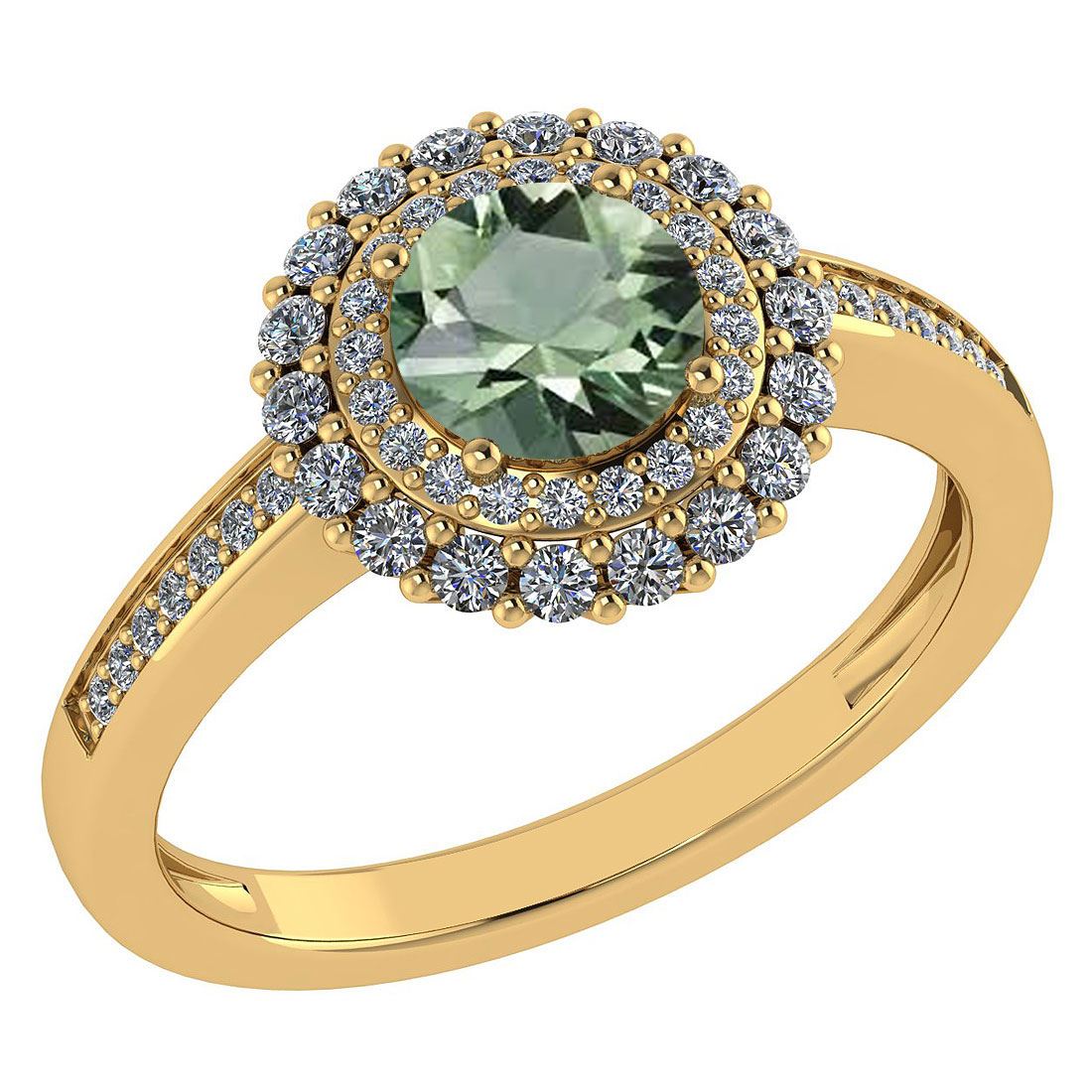 Certified 1.28 Ctw Green Amethyst And Diamond 14k Yello **|**|** Center Stone Approx Weight ; 0.84 Ctw (1 Pcs Round) Center Stone Color: Green Amethyst Center Stone Setting ; Prong Side Stone (1.mm 34Pcs And 1.5 18Pcs Round Diamond) 0.44 ctw Side Stone Color: White G-H Diamond Side Stone Setting: Prong Side Stone Clarity: VS/SI1 Metal Color Yellow Gold Metal Weight: Approx 3.10 Gram 14K Yellow Gold Halo Ring