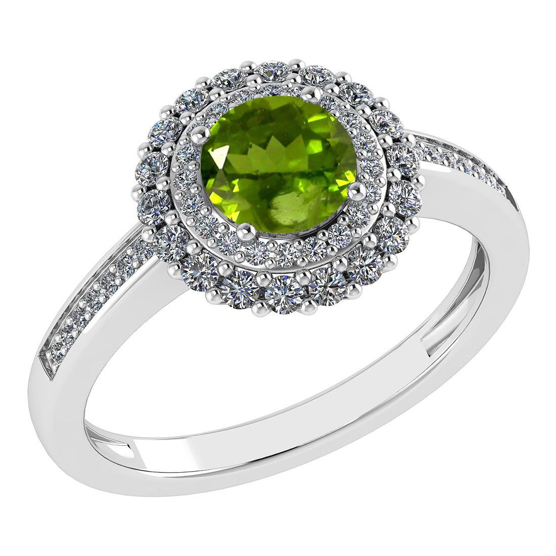 Certified 1.28 Ctw Peridot And Diamond 14k Yellow Halo **|**|** Center Stone Approx Weight ; 0.84 Ctw (1 Pcs Round) Center Stone Color: Peridot Center Stone Setting ; Prong Side Stone (1.mm 34Pcs And 1.5 18Pcs Round Diamond) 0.44 ctw Side Stone Color: White G-H Diamond Side Stone Setting: Prong Side Stone Clarity: VS/SI1 Metal Color Yellow Gold Metal Weight: Approx 3.10 Gram 14K Yellow Gold Halo Ring