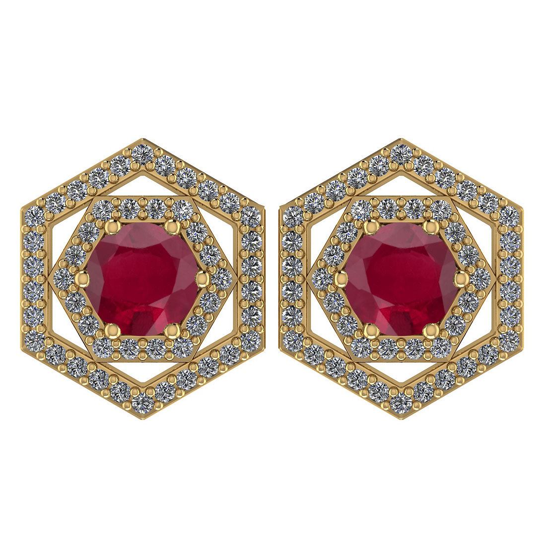 Certified 1.38 Ctw Ruby And Diamond 14k Yellow Gold Hal **|**|** Center Stone Weight ; 0.90 Ctw (2 Pcs Round) Center Stone Color: Peridot Center Stone Setting ; Prong Side Stone 0.48 ctw Side Stone Color: White J-K Diamond Side Stone Setting: Prong Side Stone Clarity: VS/SI1 Metal Color Yellow Gold Metal Weight : Approx 2.82 Gram 14K Yellow Gold Halo Stud Earring