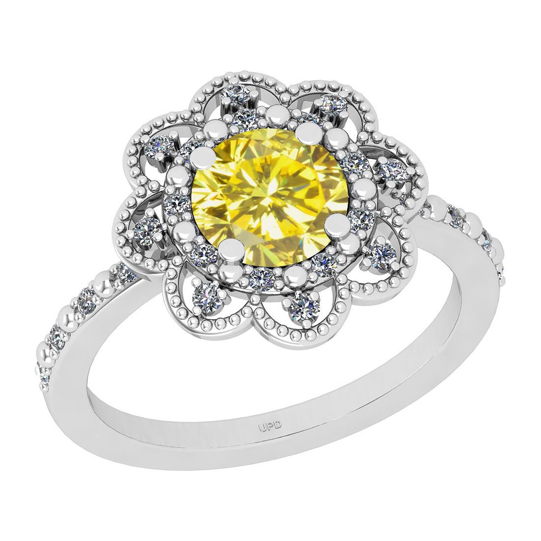 Certified 1.45 Ctw I2/I3 Treated Fancy Yellow And Diamo **|**|** Center Stone Approx Weight: 1.25 Ctw (Round Cut) Center Stone Color: Treated Fancy Yellow Diamond Center Stone Clarity: I2/I3 Center Stone Setting: Prong Side Stone 0.20 Ctw Side Stone Color: J-K Stone Clarity: I2/I3 Stone Setting: Prong Metal Approx Weight: 3.20 gram 10K White Gold Ring Size: 6 (Free Sizing Avail Made In USA)