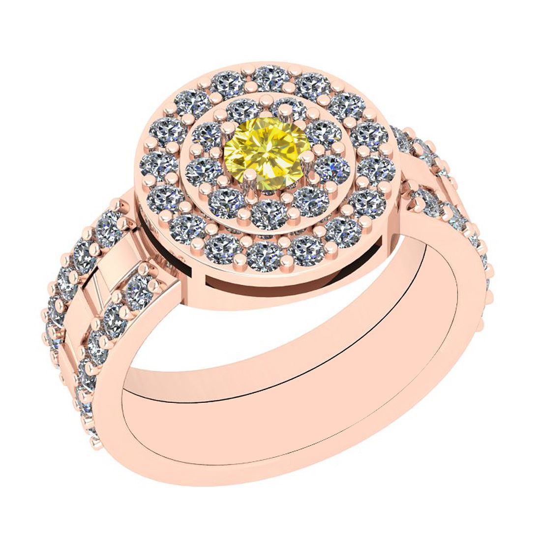Certified 1.47 Ctw I2/I3 Treated Fancy Yellow And White **|**|** Center Diamond Approx Weight: 0.25 Ctw (Round Cut) Center Color: Treated Fancy Yellow Diamond Stone Clarity: I2/I3 Center Stone Setting: Prong Side Stone 1.22 Ctw Side Stone Color: J-K Stone Clarity: I2/I3 Stone Setting: Prong Metal Approx Weight: 5.50 Gram 14K Rose Gold Bridal Wedding Ring Size: 6 (Free Sizing Available)
