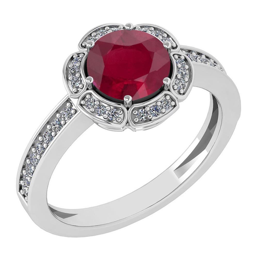 Certified 1.47 Ctw Ruby And Diamond VS/SI1 Engagement H **|**|** Center Stone Approx Weight ; 1.25 Ctw (1 Pcs Round) Center Stone Color: Ruby Center Stone Setting ; Prong Side Stone (34 Pcs Round Diamond) 0.22 ctw Side Stone Color: White G-H Diamond Side Stone Setting: Pave Stone Clarity: VS/SI1 Metal Approx Weight: 2.80 Gram 14K White Gold Halo Ring Made In USA
