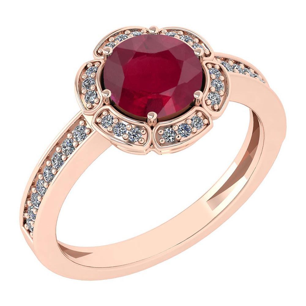 Certified 1.47 Ctw Ruby And Diamond VS/SI1 Engagement H **|**|** Center Stone Weight ; 1.25 Ctw (1 Pcs Round) Center Stone Color: Ruby Center Stone Setting ; Prong Side Stone (34 Pcs Round Diamond) 0.22 ctw Side Stone Color: White G-H Diamond Side Stone Setting: Pave Stone Clarity: VS/SI1 Metal Approx Weight: 2.80 Gram 14K Rose Gold Halo Ring Made In USA