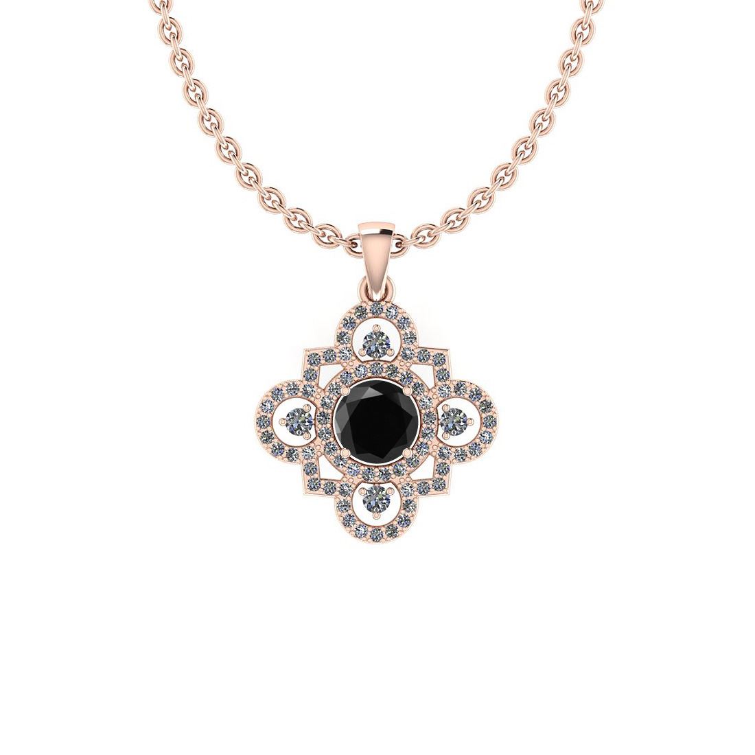 Certified 1.50 Ctw I2/I3 Treated Fancy Black and White **|**|** Center Approx Weight: 1.00 Ctw (Round Cut) Center Color: Treated Fancy Black Diamond Center Clarity: I2/I3 Center Setting: Prong Side Stone 0.50 Ctw Side Stone Color: G-H Stone Clarity: I2/I3 Stone Setting: Prong Metal Approx Weight: 2.00 Gram 18K Yellow Gold Pendant