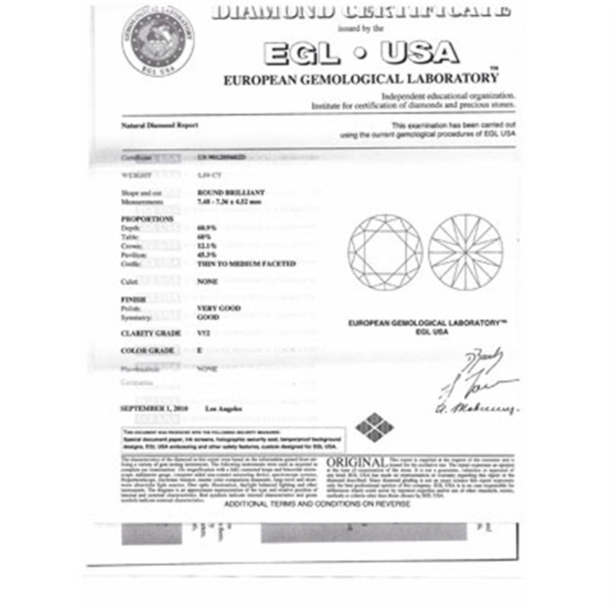 Total CTW: 1.5; Jewelry: Loose Diamond ; Diamond Count: 1 Round Brilliant ; Diamond CTW: 1.5 ; Clarity: VS2 ; Color: E ; MSRP: $26100