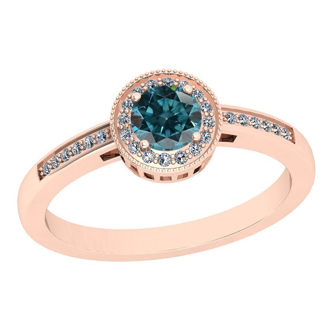 Certified 1.53 Ctw I2/I3 Treated Fancy Blue and White D **|**|** Center Approx Weight: 1.25 Ctw (Round Cut) Center Color: Treated Fancy Blue Diamond Center Clarity: I2/I3 Center Setting: Prong Side Stone 0.28 Ctw Side Stone Color: G-H Stone Clarity: I2/I3 Stone Setting: Prong Metal Approx Weight: 3.40 Gram 18K Rose Gold Engagement Halo Ring Size: 6 (Free Sizing Avail)