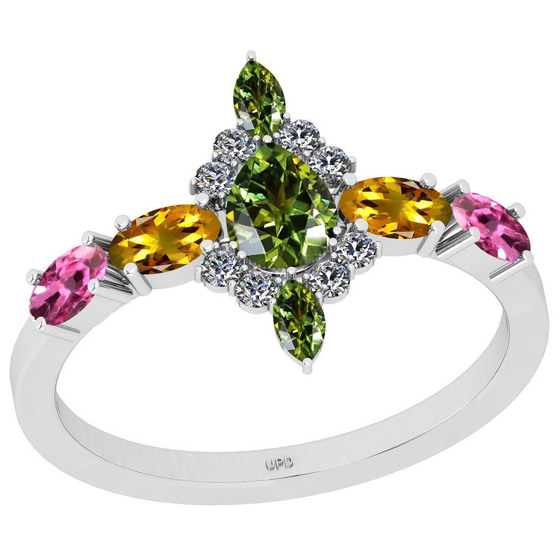 Certified 1.56 Ctw I2/I3 Multi Stone And Diamond 14K Wh **|**|** Multi Stone Approx Weight: 1.45 Ctw (MarquisePearOval Cut) Multi Stone Color: pinkYellowGreen Sapphire Stone Setting: Prong Side Stone 0.11 Ctw Side Stone Color: J-K Stone Clarity: I2/I3 Stone Setting: Prong Metal Approx Weight: 3.30 Gram 14K White Gold Engagement Ring Size: 6 (Free Sizing Avail Made In USA)