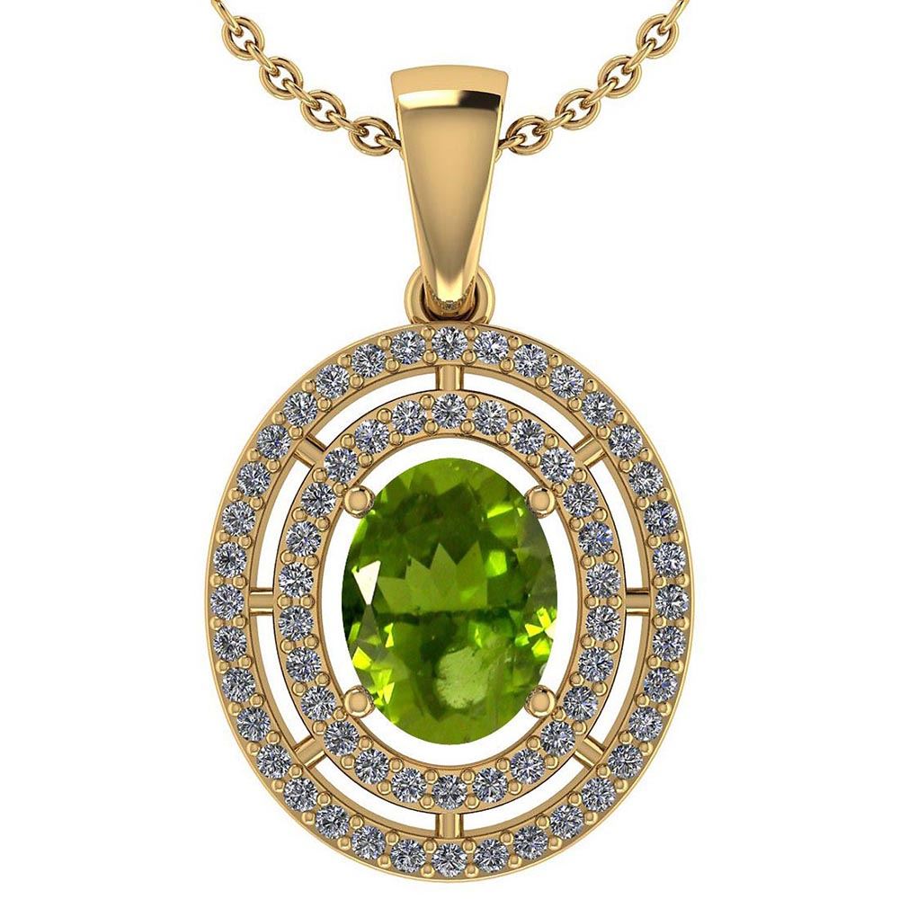 Certified 1.56 Ctw Peridot And Diamond 18K Yellow Gold **|**|** Center Stone Weight ; 1.25 Ctw (1 Pcs Oval) Center Stone: Peridot Center Stone Setting ; Prong Side Stone (1.mm 62 Pcs Round Cut Diamond) 0.31 ctw Side Stone Color : White G-H Diamond Side Stone Setting: Prong Side Stone Clarity : VS/SI1 Metal Color Yellow Gold Metal Weight :Approx 2.70 Gram 18K Yellow Gold Halo Pendant